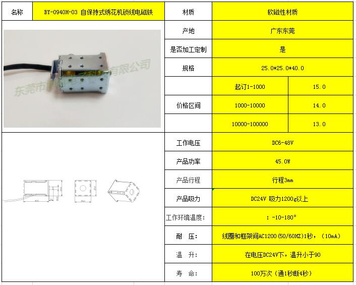 BY-0940H-03 自保持式绣花机锁线电磁铁