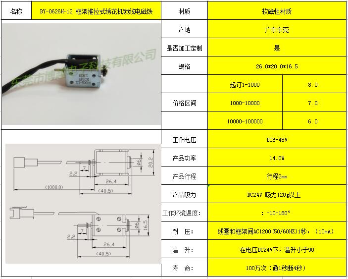 BY-0626H-12 框架推拉式绣花机锁线电磁铁