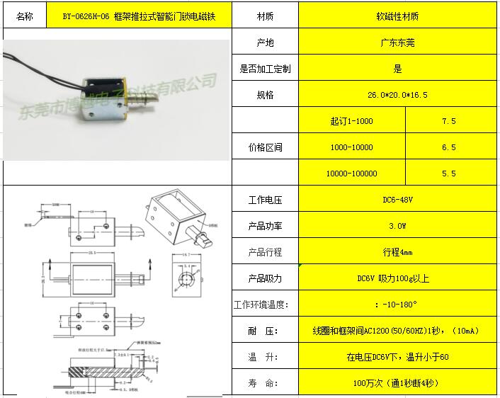 BY-0626H-06 框架推拉式智能门锁电磁铁
