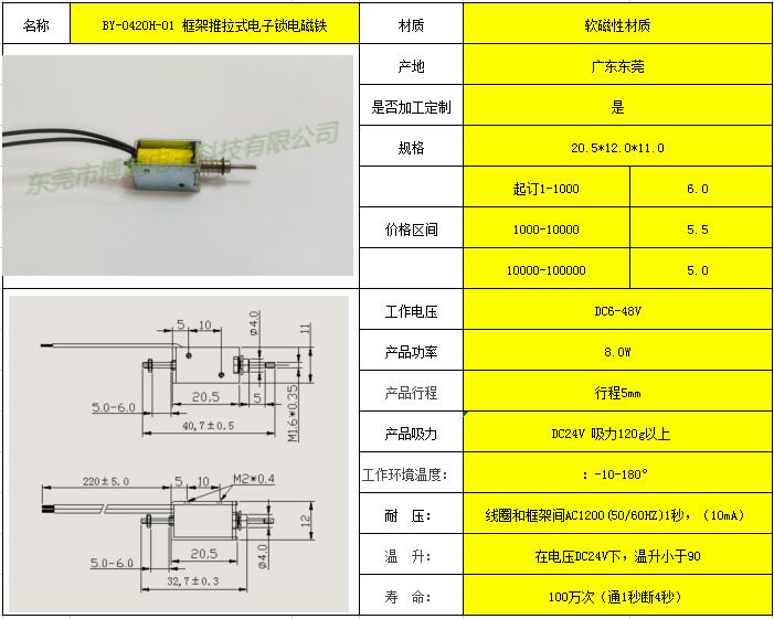 BY-0420H-01 框架推拉式电子锁电磁铁