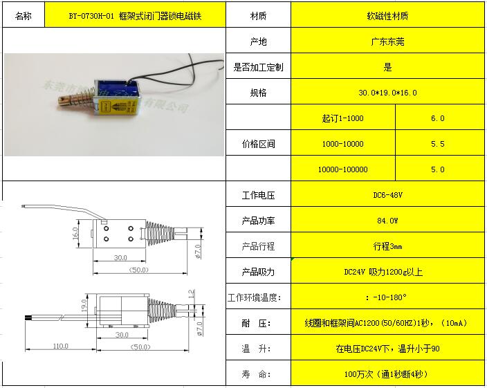 BY-0415H 框架推拉式电子锁电磁铁