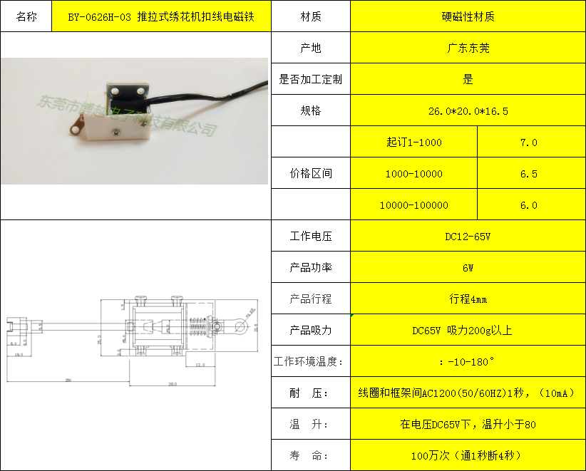 BY-0626H-03 推拉式绣花机扣线电磁铁