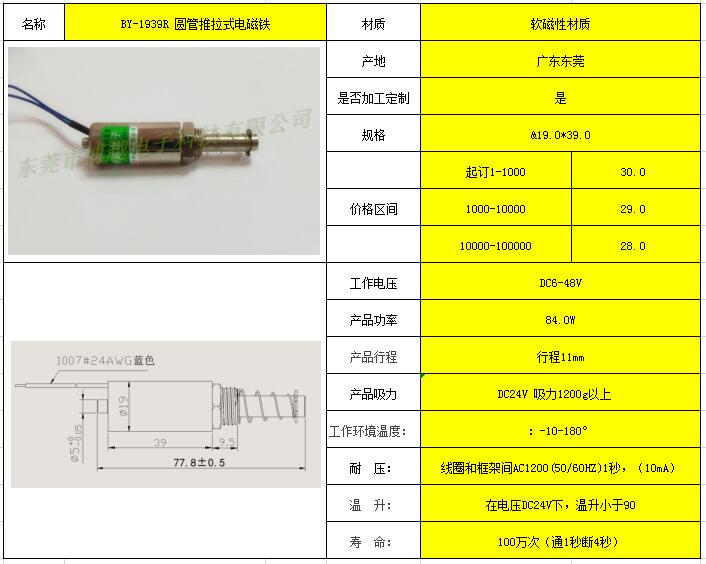BY-1939R 圆管推拉式电磁铁