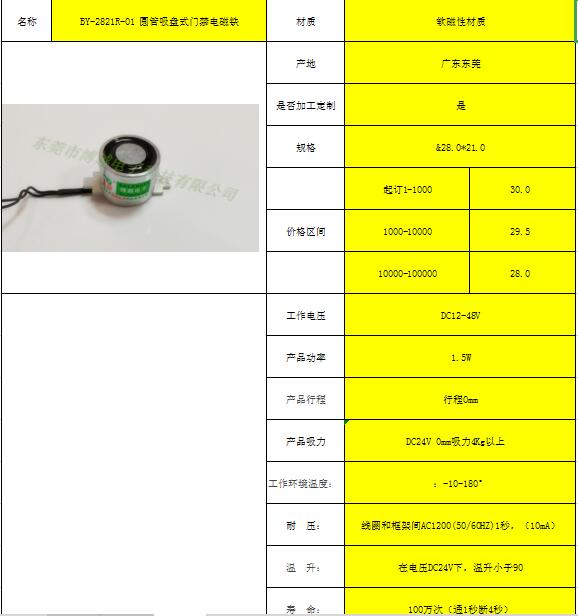 BY-2821R-01 圆管吸盘式门禁电磁铁
