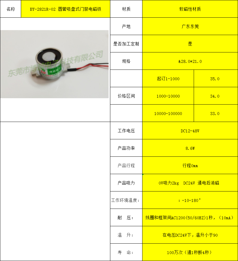 BY-2821R-02 圆管吸盘式门禁电磁铁