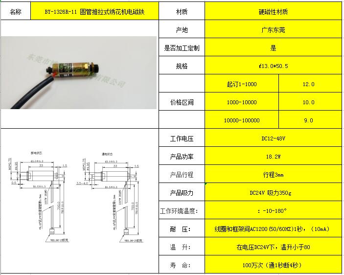 BY-1326R-11 圆管推拉式绣花机电磁铁