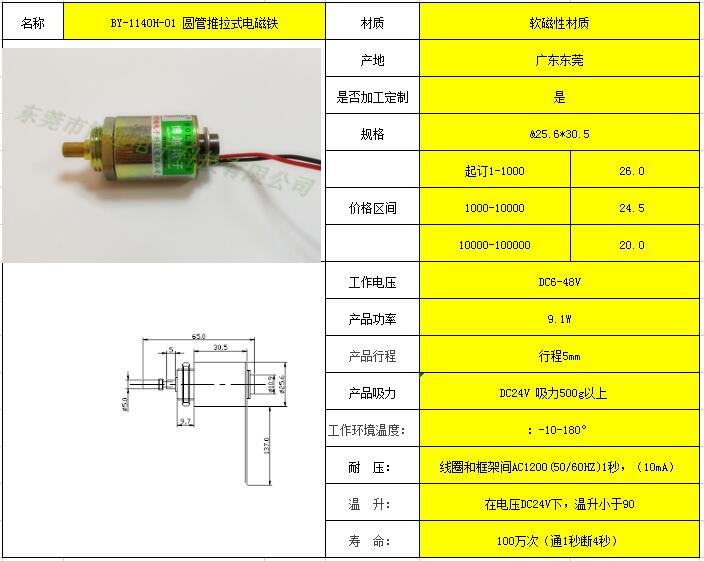 BY-1140H-01 圆管推拉式电磁铁