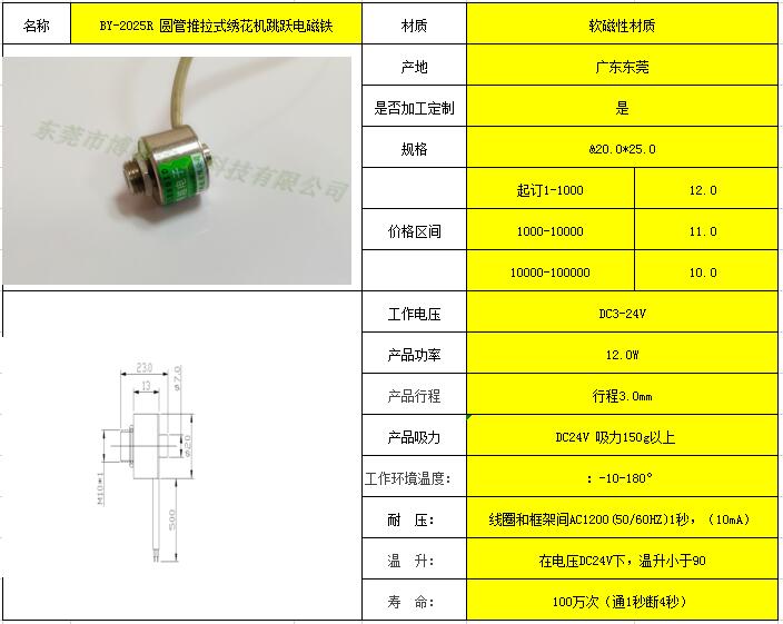 BY-2025R 圆管推拉式绣花机跳跃电磁铁